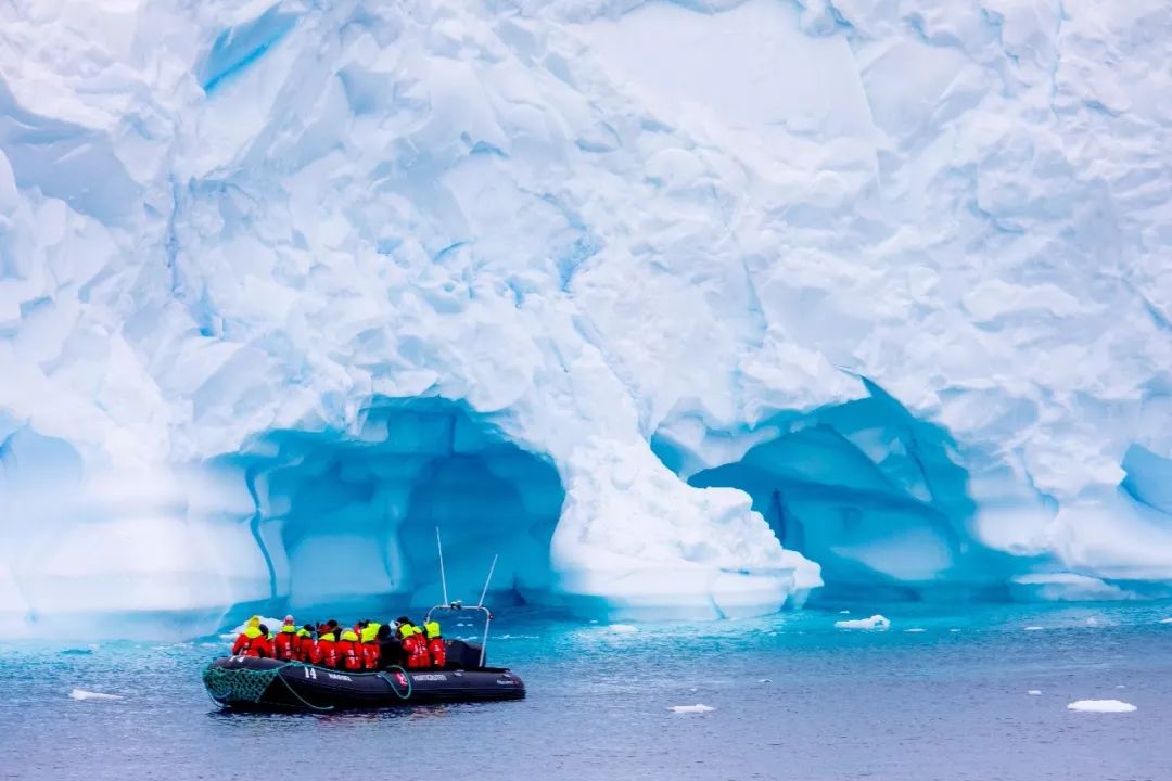 Large pieces of freshwater ice floating around them like solidified sky, all of which originated from the fracture of the edge of the polar ice sheet and then falling into the sea. The part of the iceberg that emerges from the water is only a small part of its huge body, and the idiom “the tip of the iceberg” is most intuitively confirmed here. John, the pilot of the assault boat, explained the origin of this magical blue color: Antarctic icebergs are formed from snow rather than sea water. Thousands of years of snow has been compacted layer by layer, forming glacial ice with extremely high density. When sunlight penetrates tiny gaps and bubbles in the ice layer, red and orange light with longer wavelengths in the spectrum are absorbed, while blue and violet light with shorter wavelengths are scattered, covering the iceberg with this fascinating blue coat.